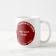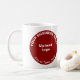Handelsmarke in roter, runder Form auf anpassbarer Tasse. Passen Sie es an, indem Sie Ihr Firmenlogo hochladen und Ihren Firmennamen, Ihre Stadt oder Ihren Staat eingeben. Sie können es in Ihre Werbeprodukte aufnehmen, Werbegeschenke oder Geschenke an Ihre Kunden oder Kunden, eine Marketing-Strategie, um Ihr Unternehmen zu werben oder Ihre Marke zu fördern. Anpassbare Tasse, mit der Sie Markenbewusstsein schaffen können. Tasse für Ihr Lebensmittelgeschäft wie Coffee Shop, Diner oder Restaurant. Bitte Karo nach dem Hochladen von Logos und Schriftzeichen auf das Aussehen der Vorder- und Rückseite. Wenn Ihnen das Aussehen gefällt, können Sie jetzt Ihre Bestellung aufgeben. Wenn Sie das Logo und Texte verändern und verändern möchten, passen Sie bitte das Design-Tool an.