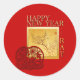 Roter Rat Papier-Schnitt (gedruckt Bild) an der Ecke eines asiatischen Gemäldes mit Gruß in Englisch in der oberen (Goldschrift und Tropfschatten nicht anpassbar). Design auf Rundaufkleber mit goldenem Bild als Hintergrund vorne. Passende quadratische Aufkleber, quadratische und rechteckige Einladungen, Grußkarte, Postkarte, Handwerksbedarf und mehr... Perfect for Chinese New Year of The Rat 2020. — "The Rat (子) ist einer der 12-jährigen Zyklen von Tieren, die im chinesischen Zodiakum erscheinen und mit dem chinesischen Kalender in Zusammenhang stehen. Das Jahr der Ratte ist mit dem Symbol der Irdischen Zweigniederlassung 子 assoziiert. Das Jahr der Ratte ist das Schaltjahr. Personen, die innerhalb dieser Zeitbereiche geboren sind, sollen im "Jahr der Ratte" geboren worden sein, während sie auch das folgende Elementarzeichen tragen: 5. Februar 1924 - 23. Januar 1925 = Rat der Wälder, 24. Januar 1936 - 10. Februar 1937 = Rat der Feuerwehr, 10. Februar 1948 Januar 1949 = Rat der Erde, 28. Januar 1960 - 14. Februar 1961 = Rat der Metalle, 15. Februar 1972 - 2. Februar 1973 = Rat der Gewässer, 2. Februar 1984 - 19. Februar 1985 = Rat "Holz", 19 6. Februar 1997 = Rat der Brandgefahr, 7. Februar 2008 - 25. Januar 2009 = Rat der Erde, 25. Januar 2020 - 11. Februar 2021 = Rat der Metal, 11. Februar 2032 - 30. Januar 203 = Rat der Gewässer" Wikipedia