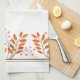 Ein wunderschönes Küchentuch mit Aquarellbildern für Rotweinbeeren und goldene Herbstlaube.