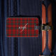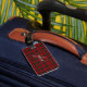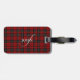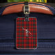 A rustic chic luggage tag featuring a stylish plaid vector design in warm red. Simply personalize it with your name and initial.