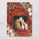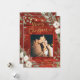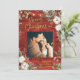 Diese wunderschönen Ferienkarten sind mit einem rustikalen, roten Holzhintergrund versehen, mit hübschen Winterfloralen und Kiefern und einer Abbildung von Saitenlichtern. Ihr Foto geht in die Mitte, und das moderne Goldskript sagt "Frohe Weihnachten".