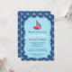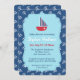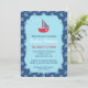 Ahoy! Das ist ein Junge! Laden Sie Freunde und Familie ein, um zu segeln und feiern Sie die Ankunft Ihres kleinen Seemanns mit dieser schicken und eleganten nautischen Babydusche-Einladung! Es verfügt über ein niedliches kleines Segelboot mit einem Segel aus bunten Streifen und einem Stern auf seinem Brett. Eine Farbpalette aus Rot, Weiß, Blau und ein Muster, das mit Ankern gemacht wurde. Diese Einladung ist perfekt für eine nautische Themenparty! Personalisieren Sie einfach Ihre Party-Daten.