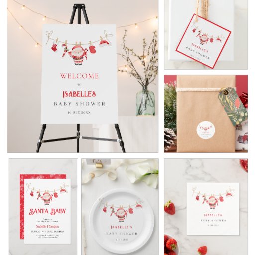 Red Santa Baby Christmas Baby Shower Invitation Einladung