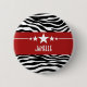 Der moderne Sassy Star Zebra Button mit seinem schicken schwarz-weiß zebrafarbenen Zebrahintergrund und dem fett roten Rahmen mit einem lustigen Sternmotiv. Dieses mädchenhafte Design kann mit dem personalisierten Text Ihrer Wahl angepasst werden. Klicken Sie auf "Anpassen", um weitere Personalisierungsoptionen zu erhalten.