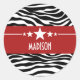 Die trendigen und modernen Sassy Star Zebra Sticker mit einem schicken schwarz-weißen Zebra-Hintergrund und einer fett roten Grenze mit einem lustigen Sternmotiv. Dieses mädchenhafte Design kann mit dem personalisierten Text Ihrer Wahl angepasst werden. Klicken Sie auf "Anpassen", um weitere Personalisierungsoptionen zu erhalten.