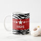 Moderne Sassy Star Zebra Tasse mit einem schicken, schwarz-weiß zebrafarbenen Hintergrund und einer kühnen roten Grenze mit einem lustigen Sternmotiv. Dieses mädchenhafte Design kann mit dem personalisierten Text Ihrer Wahl angepasst werden. Klicken Sie auf "Anpassen", um weitere Personalisierungsoptionen zu erhalten.