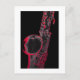 Ein dramatisches Bild eines Saxophons in Schwarz-Weiß mit roten Highlights auf schwarzem Hintergrund. Ideal für Saxfreunde!