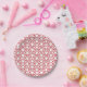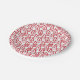 Decorative plate with a red scallop pattern on a white background, shown in two angles: front and slightly tilted. Clean, geometric design.