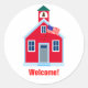Rotes Schulhaus. Ersetzen Sie den Platzhaltertext, um ihn zu personalisieren. Die Hintergrundfarbe kann geändert werden.