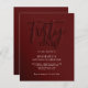 Das Design zeichnet sich durch einen dunklen Farbverlauf aus, wobei das Wort "vierzig" mutig in glänzenden roten Buchstaben auffällt. Aber es gibt noch etwas Anderes: Die Buchstaben erzeugen einen coolen Schatteneffekt, sodass sie aussehen, als würden sie aus der Seite springen. Es ist nicht nur eine Zahl, es ist eine große Sache. Diese Einladung ist Sprichwort: "Mach dich bereit für ein elegantes und stilvolles Party!"