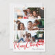 Feiern Sie die Saison mit diesem roten Drehbuch Merry Christmas vertikale 6 Foto Ferienkarte mit einer Touch von elegantem Charme. Das schicke Design präsentiert eine einfache rot-weiße Farbpalette, die den gemütlichen Geist des Winters widerspiegelt. Seine moderne und einzigartige Anziehungskraft und seine rustikale Formulierung schaffen ein perfektes Gleichgewicht zwischen saisonalen und zeitgenössischen. Die lässige und minimalistische Schrift verleiht der fröhlichen Kalligraphie eine Touch Flair. Freuen Sie sich auf die Freude und das Glück der Ferien mit diesem fröhlichen und stilvollen Gruß!