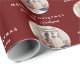 Red Script Merry Christmas Familienname Foto Wrapping Paper