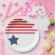 Bring creativity and personal flair to your 4th of July festivities with our customizable disposable paper plates. Featuring different shades of red running in from one side as rounded rectangles and a medium-sized blue star on one side, these plates offer plenty of blank space for personalization. Perfect for serving your favorite holiday dishes at Independence Day parties, BBQs, picnics, and any patriotic event, these durable plates make your celebration uniquely yours while ensuring an easy cleanup.