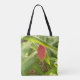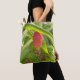 Rote Blüte einer Shampoo Ginger-Pflanze auf einer komplett bedruckten Tottasche