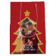 Red Shiny Christmas Tree Personalized Photo Mittlere Geschenktüte