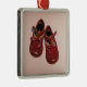 Machen Sie einen Spaziergang auf die Gedächtnisspur mit diesen Vintagen roten Schuhen! Das Kunstwerk für dieses Stück enthält ein Paar Schuhe, die zwischen drei Schwestern verteilt wurden.