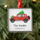 Red Siberian Husky Fahrwagen mit Weihnachtsbaum Silbernes Ornament