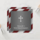 Elegante schwarze, silberne und weiße diagonale Streifen mit weißen Crossboys erste heilige Kommunion Einladung.
