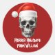 Passen Sie diesen coolen Schädel im Weihnachtsmann an, der rund Aufkleber mit eigenem personalisierten Text für eine Horror-Feier oder eine unheimlich weihnachtliche Ansammlung trägt. Beängstigender Happy Holidays Aufkleber mit festlichem Skelett.