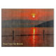 Ein sehr roter Sonnenaufgang über dem See Pend Oreille (Teichrochen) am Sandpoint, Idaho.Das Sonnenlicht reflektiert sowohl die Unterseite einer niedrig hängenden Wolkenschicht als auch das Wasser des Sees. Das starke Rot war das Ergebnis von Rauch aus nahegelegenen Waldbränden. Passen Sie Ihren eigenen Text an.