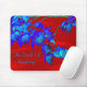 Ein roter Himmel ist eine Kulisse für saphir.cobalt blauen Hundsholz-Blätter mit einem Hauch Grün auf diesem Mousepad. Personalisieren Sie mit Ihrem Namen oder Ihrem bevorzugten Sprichwort.