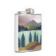 Diese wunderschöne abstrakte Landschaft zeigt eine Bergszene mit einem See und einem mehrfarbigen Himmel in Rot-, Zyan-, Blau-, Gelb- und Goldtönen.