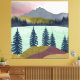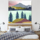 Diese wunderschöne abstrakte Landschaft zeigt eine Bergszene mit einem See und einem mehrfarbigen Himmel in Rot-, Zyan-, Blau-, Gelb- und Goldtönen.