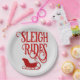 Festiges und modernes typografisches Design mit roter Schlitten-Silhouette mit "Schlittenfahrten" in extravagant gescrolltem Text auf hellgrauem Hintergrund. Ideal für Weihnachten / Feiertage auf der Zuhause oder im Büro.