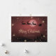Schöne schneerote Weihnachtskarten mit einer Winterszene mit Weihnachtsmann und Rentier, Schneeflocken, Sternen und fallendem Schnee auf der Vorderseite und Schneeflocken und Sterne auf der Rückseite. Personalisieren Sie diese rote Weihnachtskarte einfach mit Ihrem Familiennamen und Text.