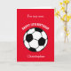 Eine rote Fußball-11. Geburtstagskarte für Enkel, Sohn, Godson, etc.. Sie können die Vorderseite dieser Fußballsport-Geburtstagskarte ganz einfach mit seinem Namen personalisieren. Die Insider-Kartenmeldung und die Rückseite der Karte können ebenfalls bearbeitet werden. Diese personalisierte sportliche 11. Geburtstagskarte für ihn wäre ein toller Sake.