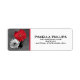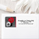 Dieses Label zeigt mein Foto von zwei Dahlias. Eine ist im monochromen Foto rot platziert. Die persönlichen Daten sind auf der rechten Seite des Etiketts. Füllen Sie die persönlichen Textfelder mit Ihren Informationen aus.