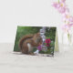 Auf dieser Geburtstagskarte befindet sich ein schönes rotes Eichhörnchen mit einem Imbiss von Sonnenblumenkernen mit einem Hintergrund aus rosa und weißen Petunien und einer schönen Vegetation. Ein kleineres Bild desselben Eichhörnchens ist drinnen. Der Text kann an Ihre Bedürfnisse angepasst werden.