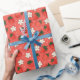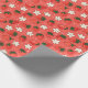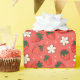 Rote Erdbeere und weißes, blumengeschmücktes Papier für Kunsthandwerk und Geschenkverpackung. Das süße Rot, Weiß, Rosa und Grün-Design ist ideal für Party und Veranstaltungen im Sommer.