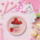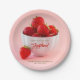 Celebrate in style with this elegant personalized paper plate featuring a vibrant photo by Destei of fresh red strawberries in a white bowl against a blush pink background. Perfect for summer brunch birthdays and special occasions, this plate adds a fresh, festive touch to your table setting.