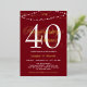 Party Einladung zum 40. Hochzeitsjubiläum in tiefrot mit Details aus weißer und goldener Folie. Jubiläum-Dinner Einladung ohne Foto mit den Jahren, in denen Sie verheiratet waren in einem weißen Schriftart und Ihre Namen in Goldfolie vor einem tiefen roten Hintergrund. Elegante vierzigste Hochzeitstag Dinner Einladung personalisiert mit Ihren Namen in Goldfolie vor einem dunkelroten Hintergrund.