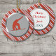 Dieses Weihnachtsschmuck mit einem roten Snowboarder auf grauem Hintergrund in einem weihnachtlich rot-weiß gestreiftem Bonbonmuster. Der gestreifte Rahmen hat eine in Silber gedruckte Innenauskleidung. Die andere Seite hat den gleichen Streifen mit drei Textfeldern, sodass Sie das weiße Innere anpassen können. Ein perfektes Geschenk für Snowboardfans!