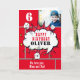 Red Superhero Comic Speech Bubble Boy Foto Geburtstag Karte. Spaß Cartoon und Comic sprechen Blase auf einem roten Hintergrund. Fügen Sie Ihr Foto hinzu, und passen Sie den Namen, das Alter, den Text und die Nachricht im Inneren an. Spaß Cartoon Geburtstagskarte für Kinder.