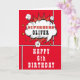 Red Superhero Comic Speech Bubble Boy Birthday Card. Fügen Sie Ihren Namen, Ihr Alter und Ihre Nachricht hinzu. Spaß Geburtstagskarte für einen Superhelden.