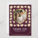 Ausdruck deiner Dankbarkeit mit mittelalterlichem Charme! Diese Dankeschön-Karten zeigen Ihr Foto in einem Schildrahmen, umgeben von faszinierenden cremefarbenen Blumen vor einem maroonroten Hintergrund. Ein einzigartiger und eleganter Weg, um Ihren Lieben 'Danke' zu sagen! Personalisieren Sie den Text, den Schriftart und die Farben, um Ihre Designeinstellungen zu Anzug zu bringen. Matching Items in unserem Shop für ein komplettes Party Thema. HINWEIS: Das Gold in diesem Artikel ist KEINE echte Folie.