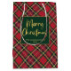 Red Tartan Kariert Gold Script Frohe Weihnachten Mittlere Geschenktüte