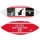Custom Red Team Name Player Number 2 Photo Football. Modern sporty custom football with player's name, team name, player's number and year on one panel and 2 custom photos on the second panel - add your text and photos. Sporty design with stripes. You can change any text on the football or erase it. A perfect gift for a football player, teammate, coach. Great keepsake to remember the favorite sport.