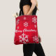 Rotes, strukturiertes Design mit weißen und weißen Schneeflocken Weihnachten über die gesamte Tasche gedruckt. Das Design zeichnet sich durch eine rote Textur mit Schneeflocken und dem Text "Frohe Weihnachten" aus.
