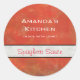 Ein Spaghetti-Sauce-Aufkleber, kann angepasst werden, um zu lesen, was immer Sie möchten, wie Tomatensauce oder andere. Der Hintergrund ist ein künstlerisch anmutender abstrakter Stil in Rot, Orange und Braun. Zeltfarbene Textur und Scrapie bemalt, um ihm ein altes, verwittertes rustikales Grunge-Gefühl zu verleihen. Persionalize mit Ihrem Namen, Text sagt<name's>Küche (mit Liebe gemacht).