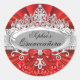 Red Tiara & Damask Quinceanera Sticker
