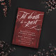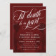 Elegantes bordeauxrotes Halloween oder eine gute Hochzeitseinladung mit Til Death schreiben wir teilweise in einem Wirblen weißen Kalligrafieschrift. Fügen Sie Ihre Einladungsworte in Weiß vor einem dunkelroten Hintergrund mit dunkleren Skeletten hinzu.