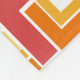 Diese mittlere Vlies-Decke hat ein geometrisches Design von L's in rot, orange und gelb, in verschiedenen Richtungen auf einem Feld von weiß platziert.