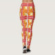 Diese Leggings haben ein geometrisches Design von L's in rot, orange und gelb, in verschiedenen Richtungen auf einem Feld von weiß platziert.