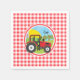 Cooler, niedlicher, roter Traktor mit grünem Feld auf niedlichem Gingham; rotes, rosa und weißes kariertes Landmuster. Personalisieren Sie dieses Kinder Bauer Thema Produkt mit Namen.