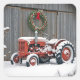 Red Tractor With Christmas Wreath Quadratischer Aufkleber