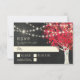 Hochzeit im Herbst RSVP-Karte mit einem weißen Baum mit einer Krone voller hellroter, rosafarbener und gelber Blätter vor einem Kalkboard-Hintergrund. Vor dem Baum hängen Reihen von zarten und sanft leuchtenden Saitenlichtern.